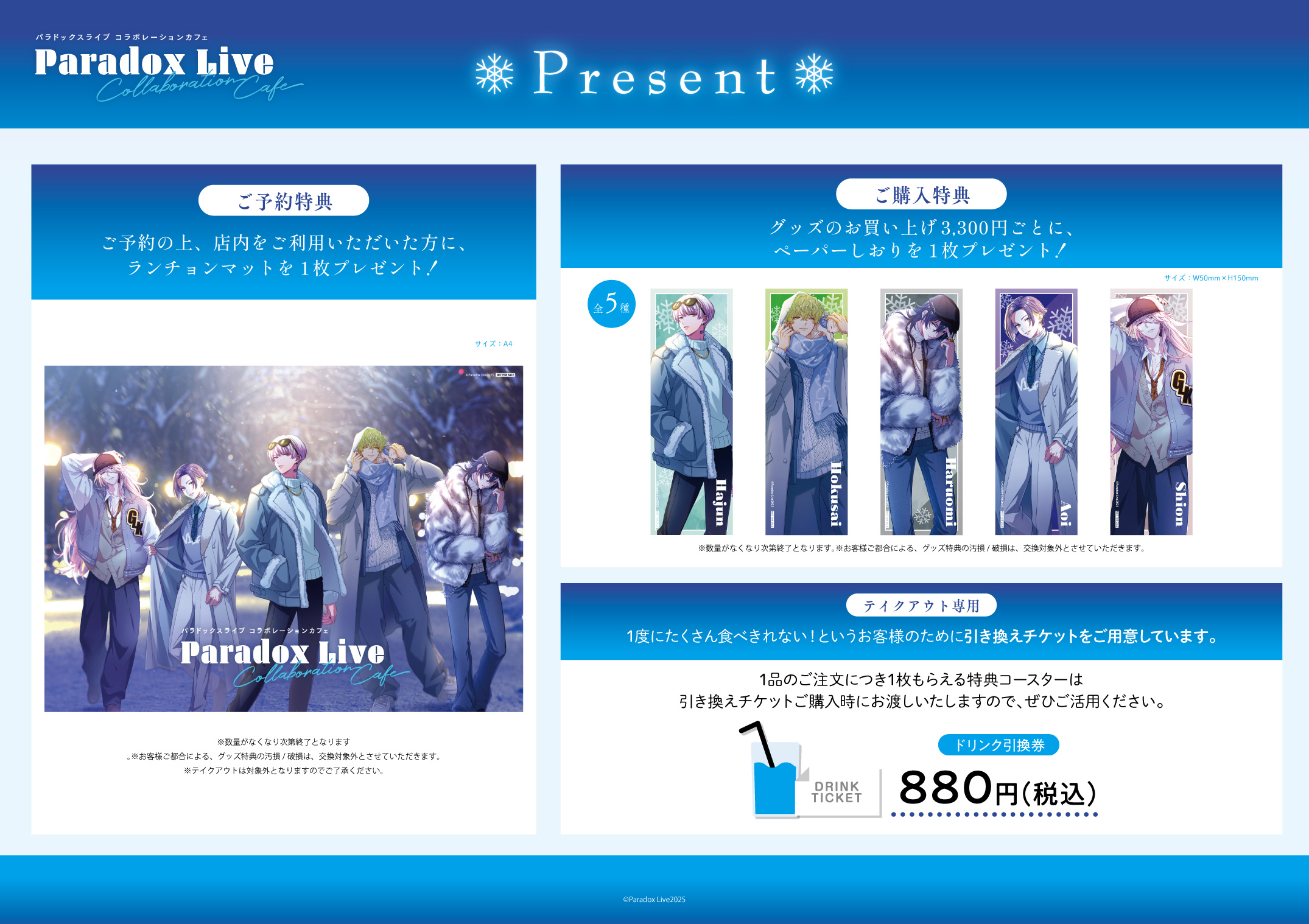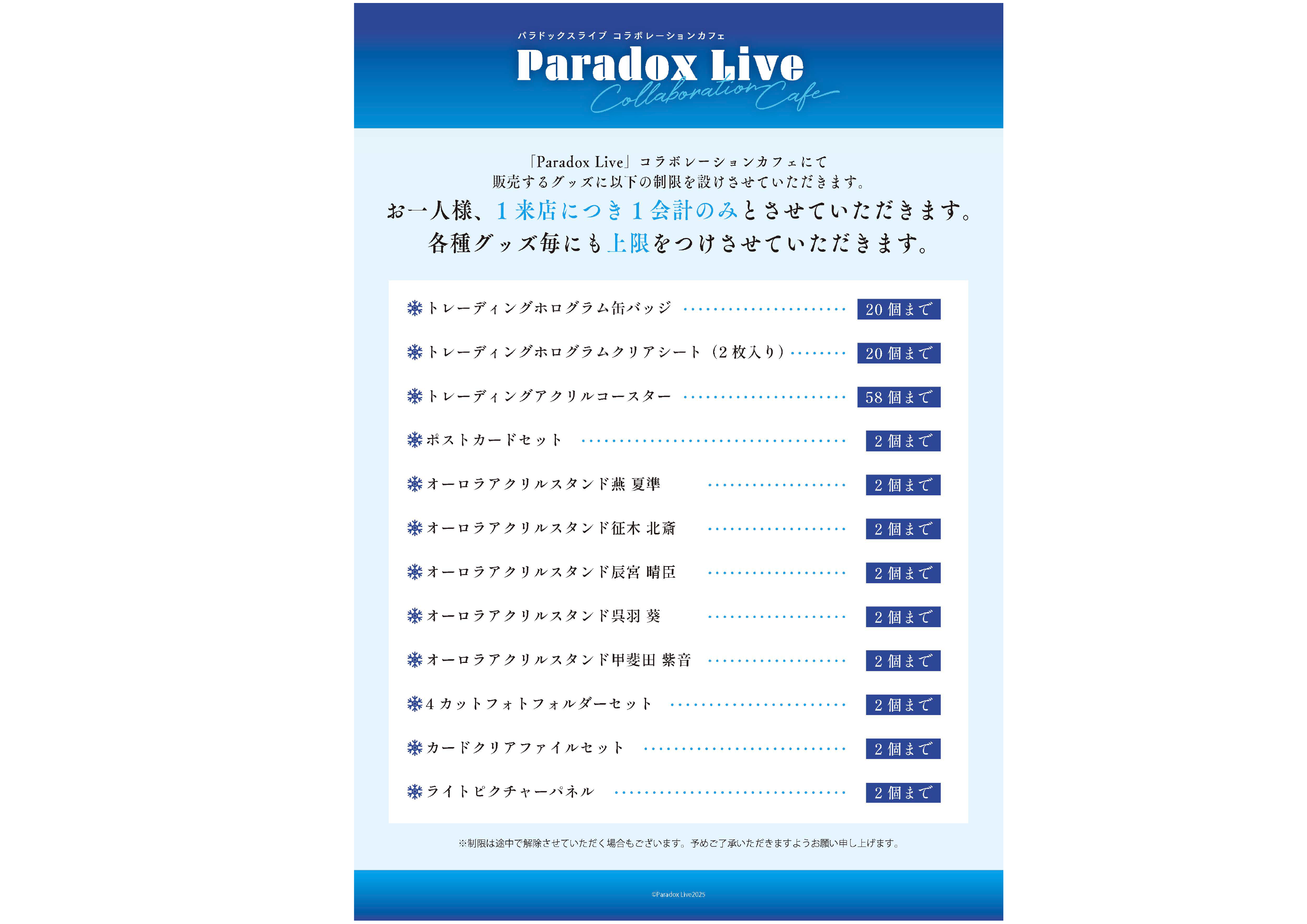 ・当店のメニュー、特典、販売グッズは数量に限りがございます。万が一、品切れの際はご容赦の程お願いいたします。