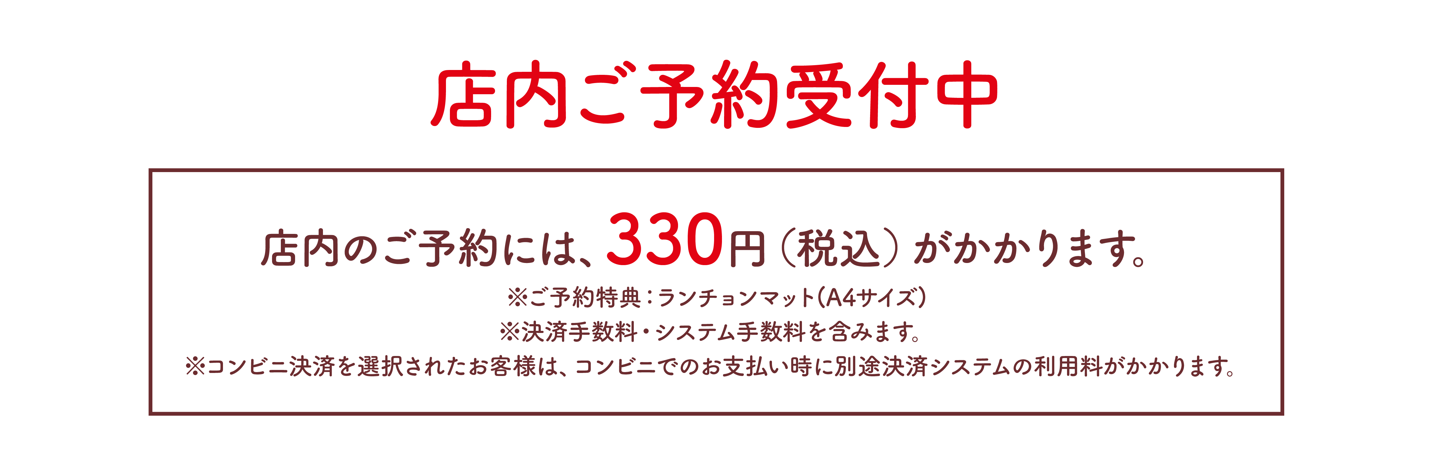 ・お席のご予約には、ご予約料として330円(税込)がかかりますのでご了承ください。