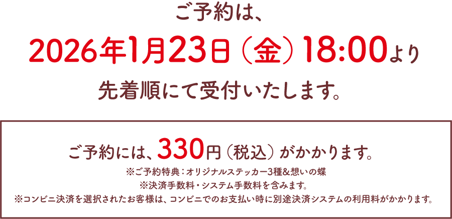 ・お席のご予約には、ご予約料として330円(税込)がかかりますのでご了承ください。
